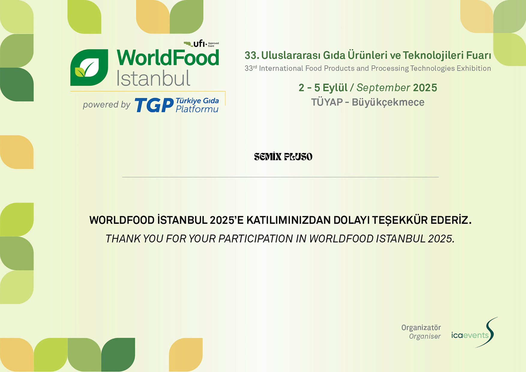 We are proud to announce our participation in the 33rd edition of WorldFood Istanbul, the leading international food and beverage exhibition in Türkiye. The event will take place from September 2–5, 2025 at the Tüyap Fair and Congress Center in Istanbul.